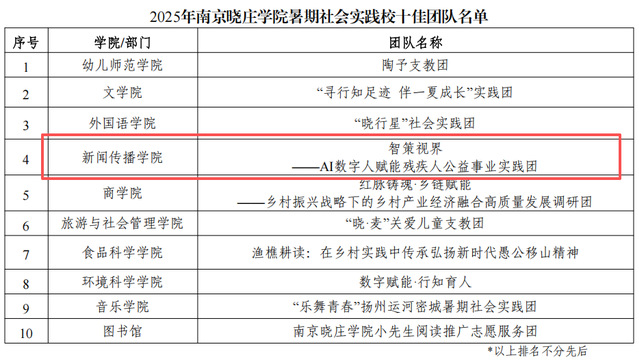 实践团由9名核心成员组成,成员在陈长伟、郭晓明两位老师的指导下,于2025年6月至8月期间,深入南京市玄武区红山街道残疾人之家,围绕“AI数字人技术赋能惠残政策宣传”开展系列实践;制作15集AI数字人政策解读短视频,内容覆盖重度残疾人护理补贴、残疾儿童康复救助等关键政策;编制70余页《AI数字人视频制作SOP手册》,推动技术流程标准化,助力基层工作人员快速掌握数字工具。